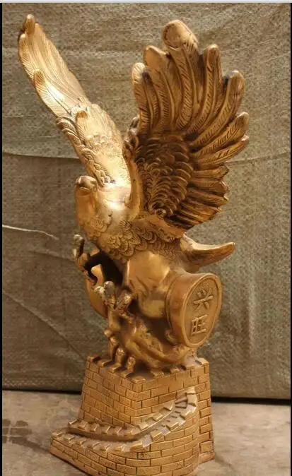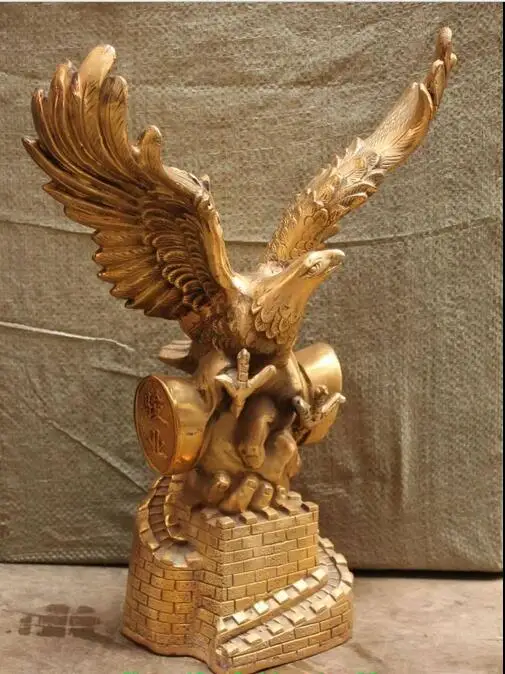 HIGH QUALITY free 19" Chinese Bronze Fly Arabia Hawk Eagle Bird On Hand The Grest Wall Sculpture fast