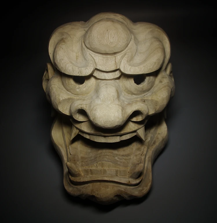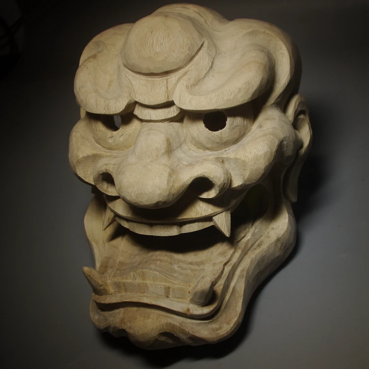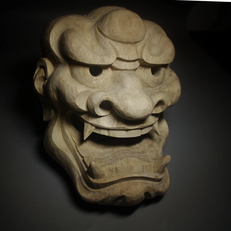 Lion Face Japanese Noh Mask Craftsman Carving Real Wood Statue Drawing Pattern Wall Hanging Wall De