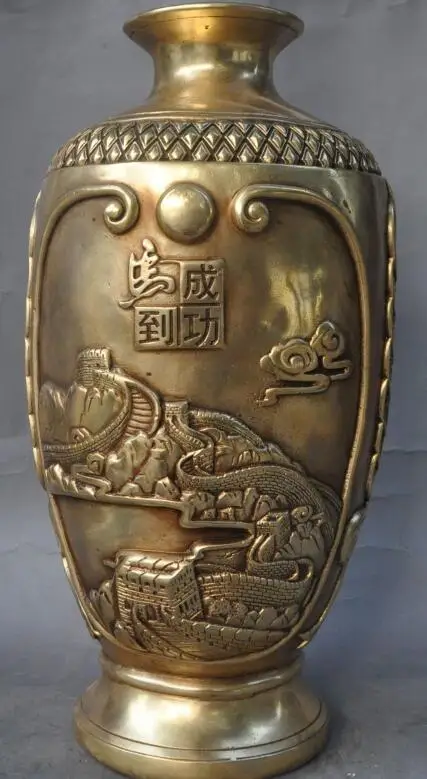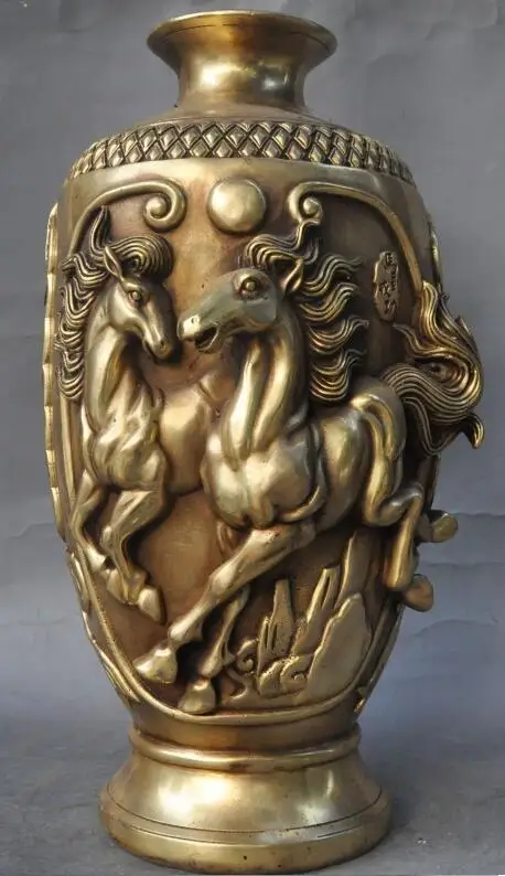 HIGH QUALITY S5380 China FengShui Bronze The Great Wall Jump Horse coin Statue Bottle Pot Vase Jar discount 30%