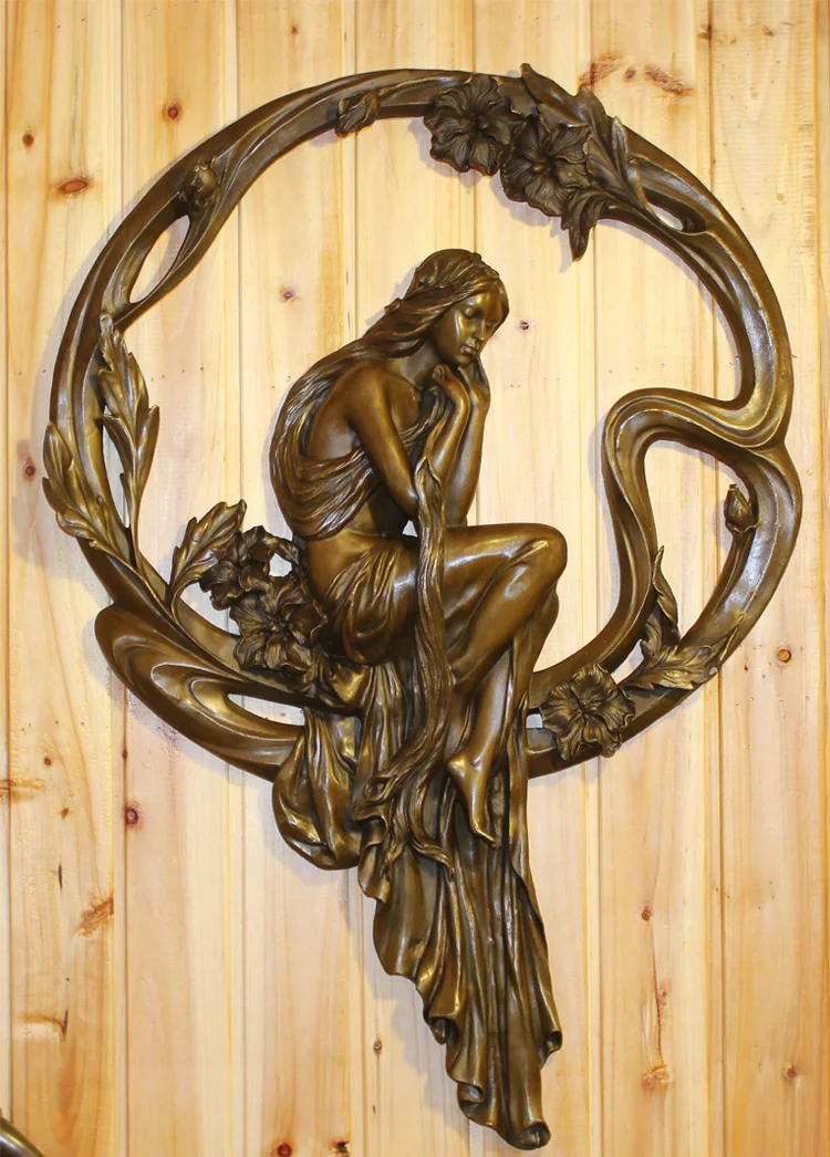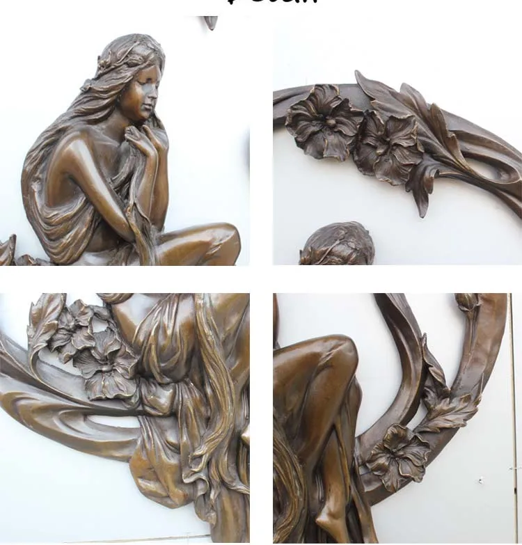 ORIGINAL 2020 home LIVING ROOM wall TOP Decor ART-70CM large Wall hanging art young girl Flower Fairy bronze