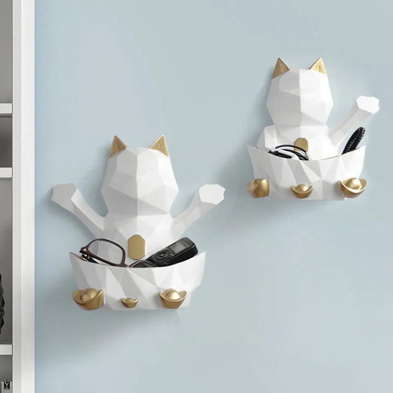 Hot Sale Statue Resin For Wedding Decoration Wall Storage Box For Candy Nut Geometric Lucky Cat Figurine Dec