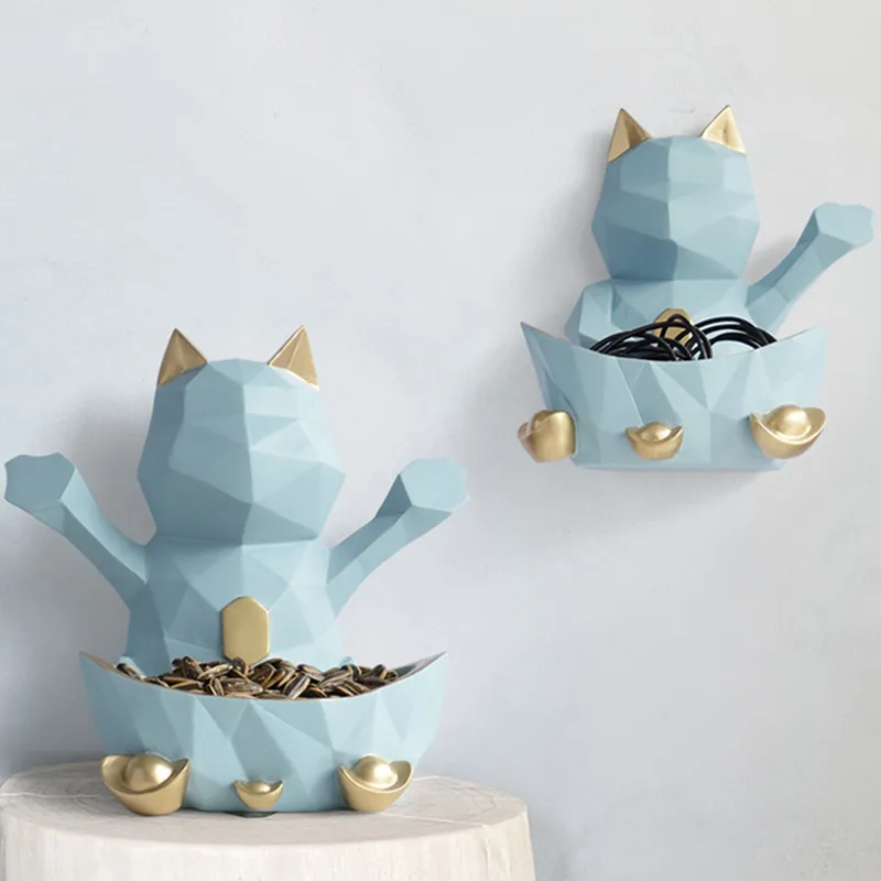 Statue Resin For Wedding Decoration Wall Storage Box For Candy Nut Geometric Lucky Cat Figurine Dec