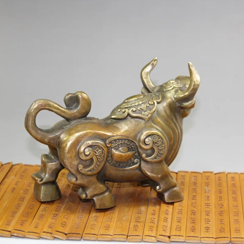 BEST SELLER Pure bull Zhaocai bronze bull gifts yellow bull antique antique ornaments of Wall Street Feng Shui