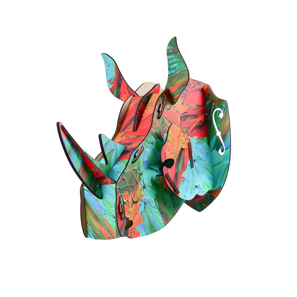 BEST Rhinoceros wall pendant wooden crafts pendant decoration Christmas decorations