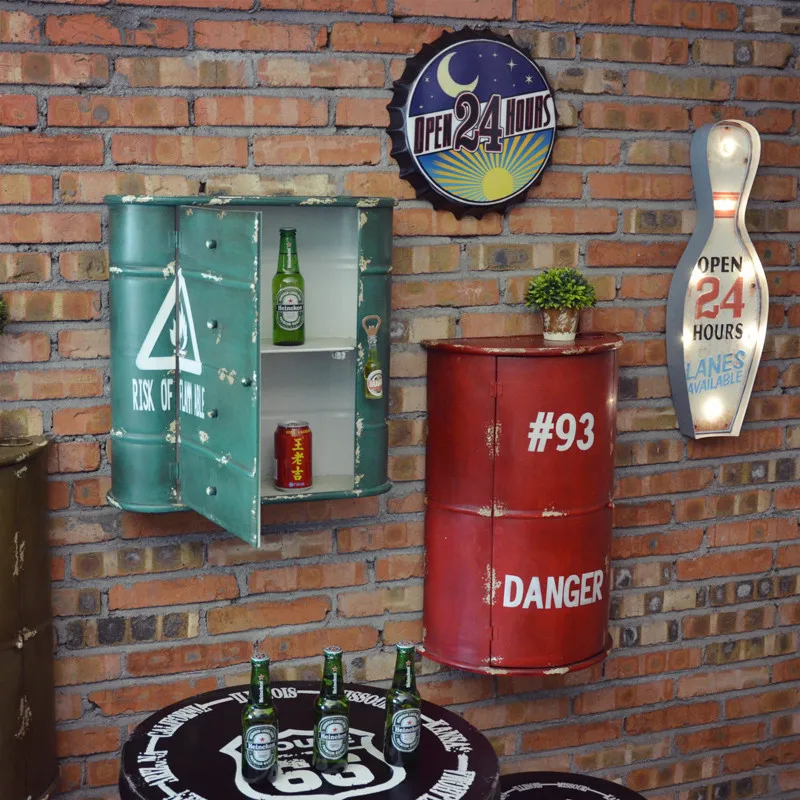 Vintage industrial iron wine rack drum wind loft bar Home Furnishing wall mural wall decoration wal